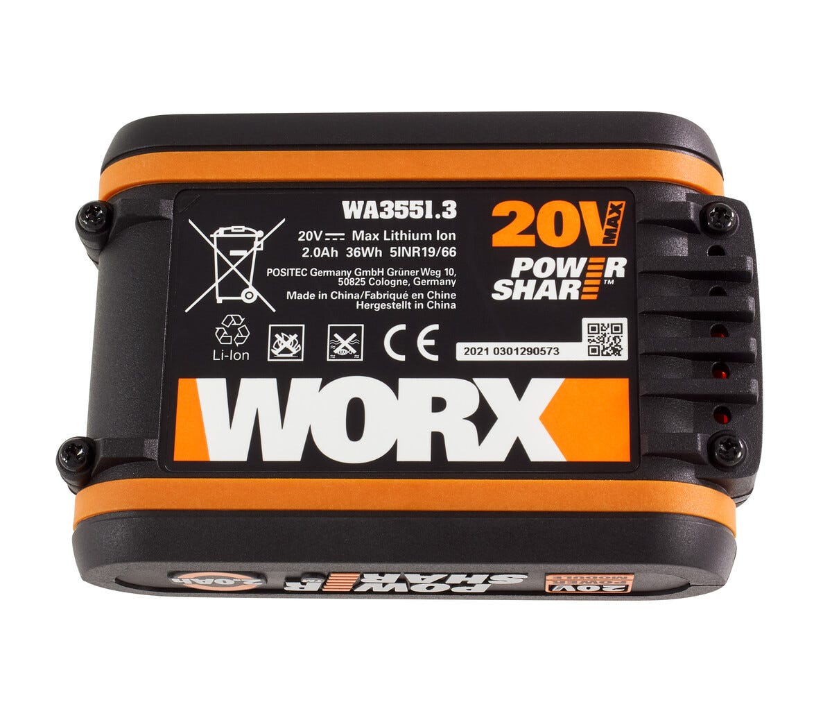 Powershare - passar till alla maskiner i Worx 20 V-serien.