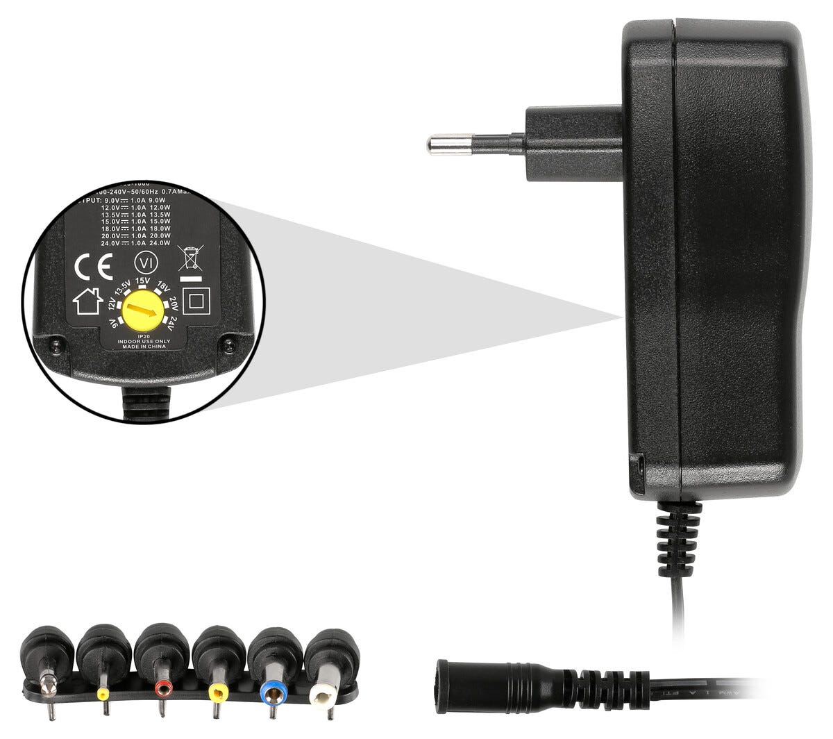 • Ställbar spänning och utbytbara DC kontakter – passar en mängd olika utrustningar.