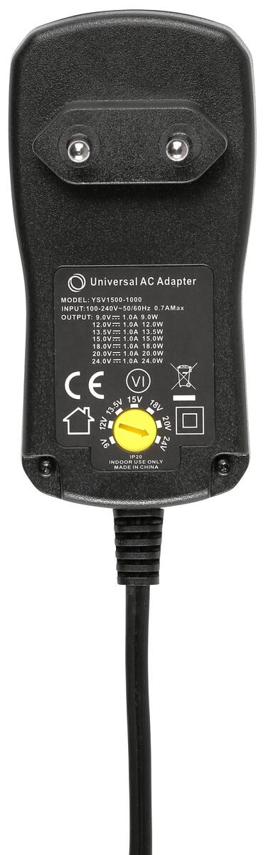 • Utspänning i 7 olika steg: 9 V, 12 V, 13,5 V, 15 V, 18 V, 20 V och 24 V.