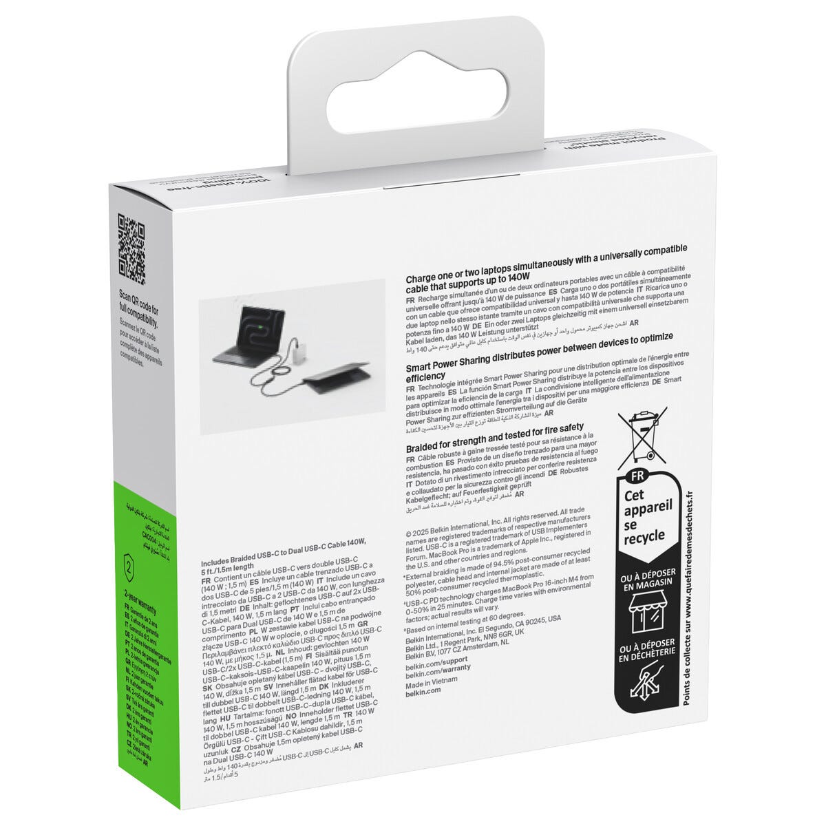 Belkin BoostCharge Pro USB-C - 2 x USB-C-kabel 140 W, 1,5 m