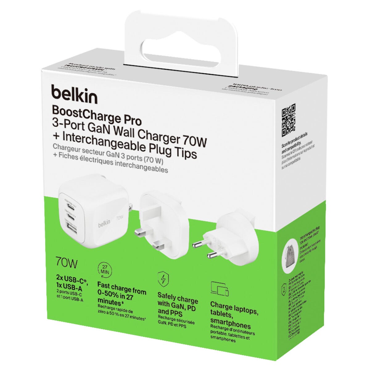 • Belkin BoostCharge Pro kompakt GaN-reseladdare med hög effekt.