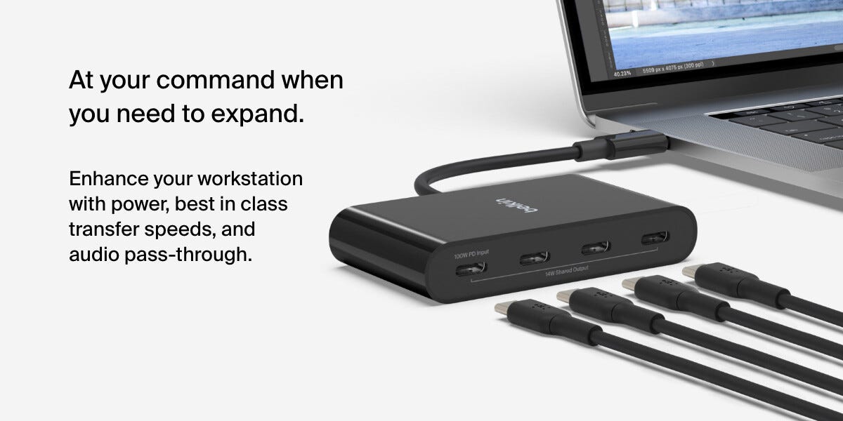 Belkin Connect USB-C till 4-Port USB-C Hub, 100 W