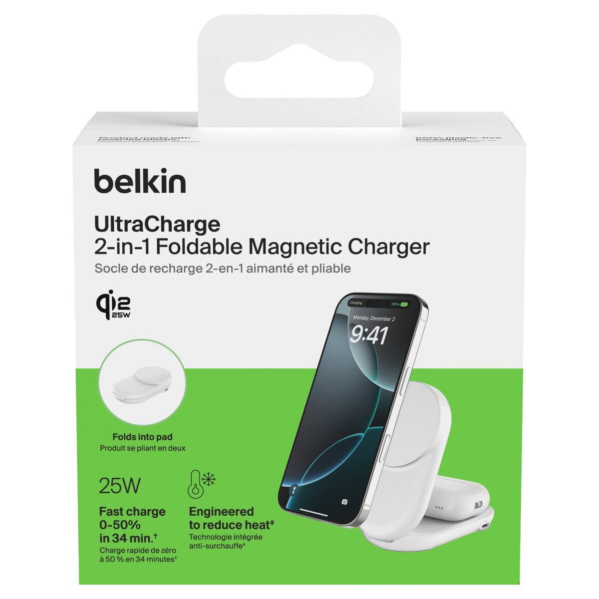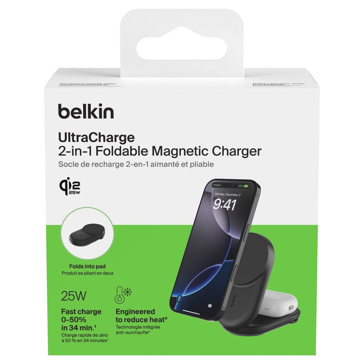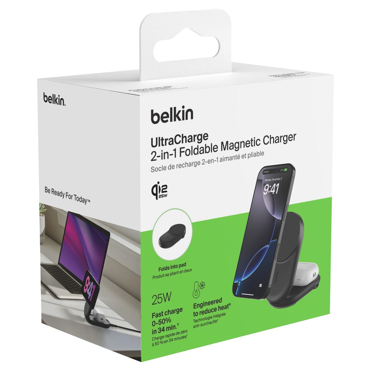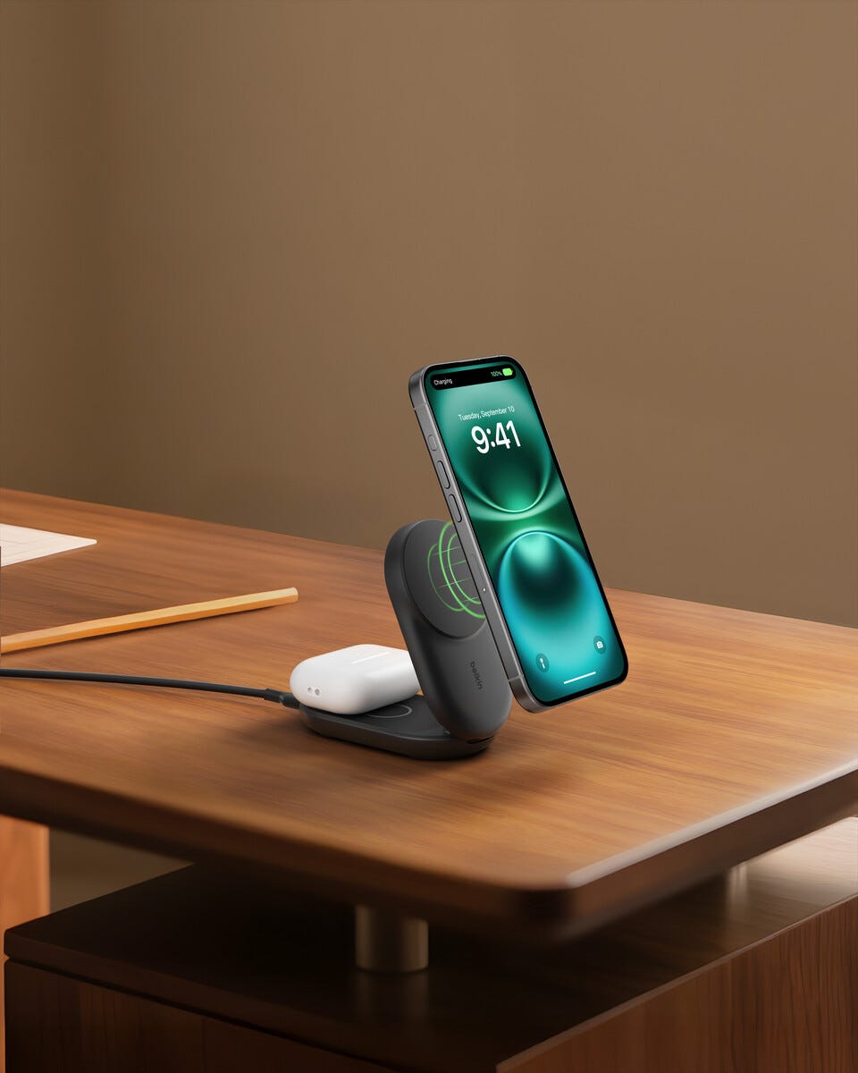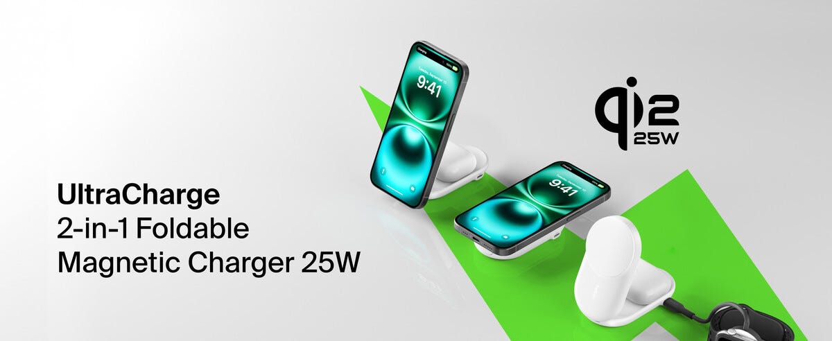 Belkin UltraCharge 2 in 1 Qi2-laddare, 25 W