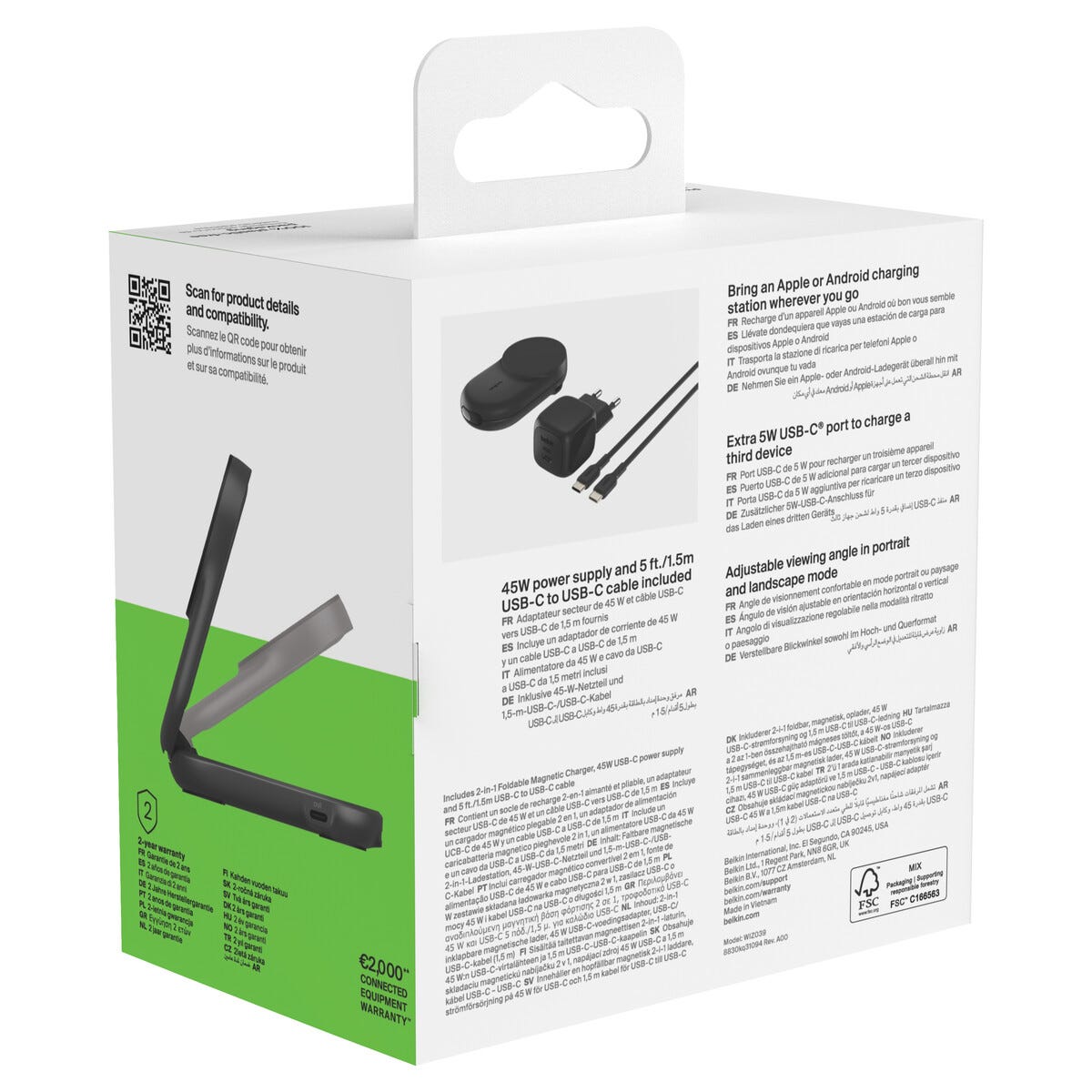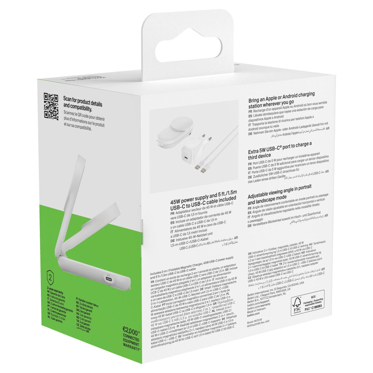 • 45 W USB-C strömadapter och USB-C-kabel (1,5 m) ingår.