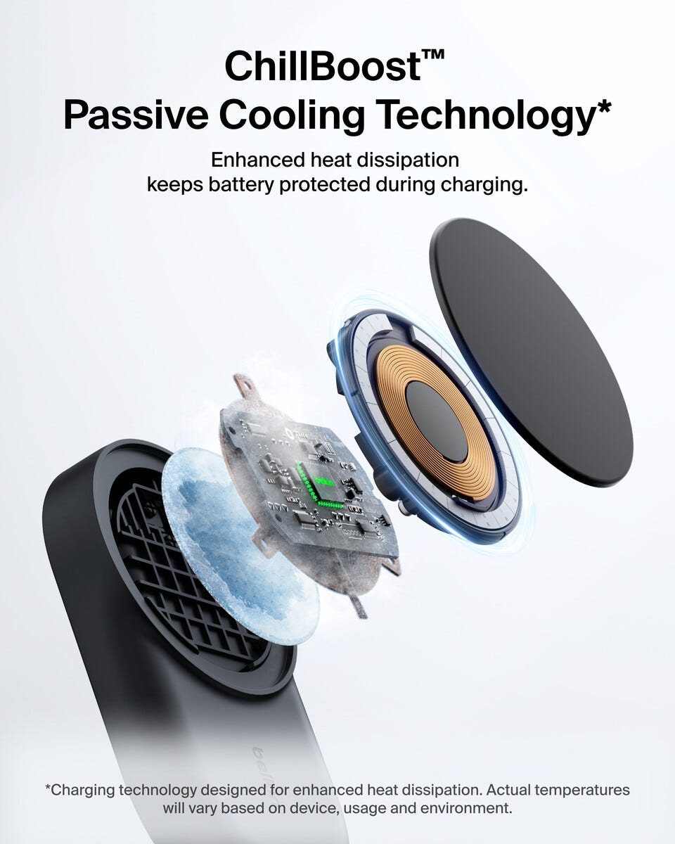 • Trådlös laddare med ChillBoost – håller temperaturen låg och skyddar batteriet.
