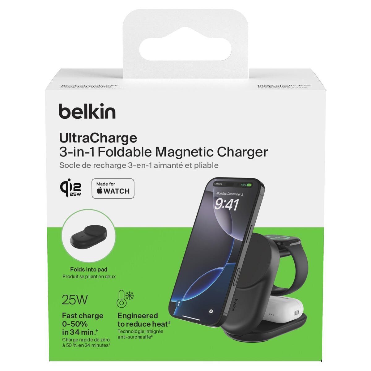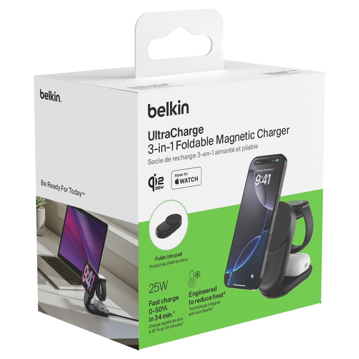 Belkin UltraCharge 3 in 1 vikbar Qi2-laddare, 25W