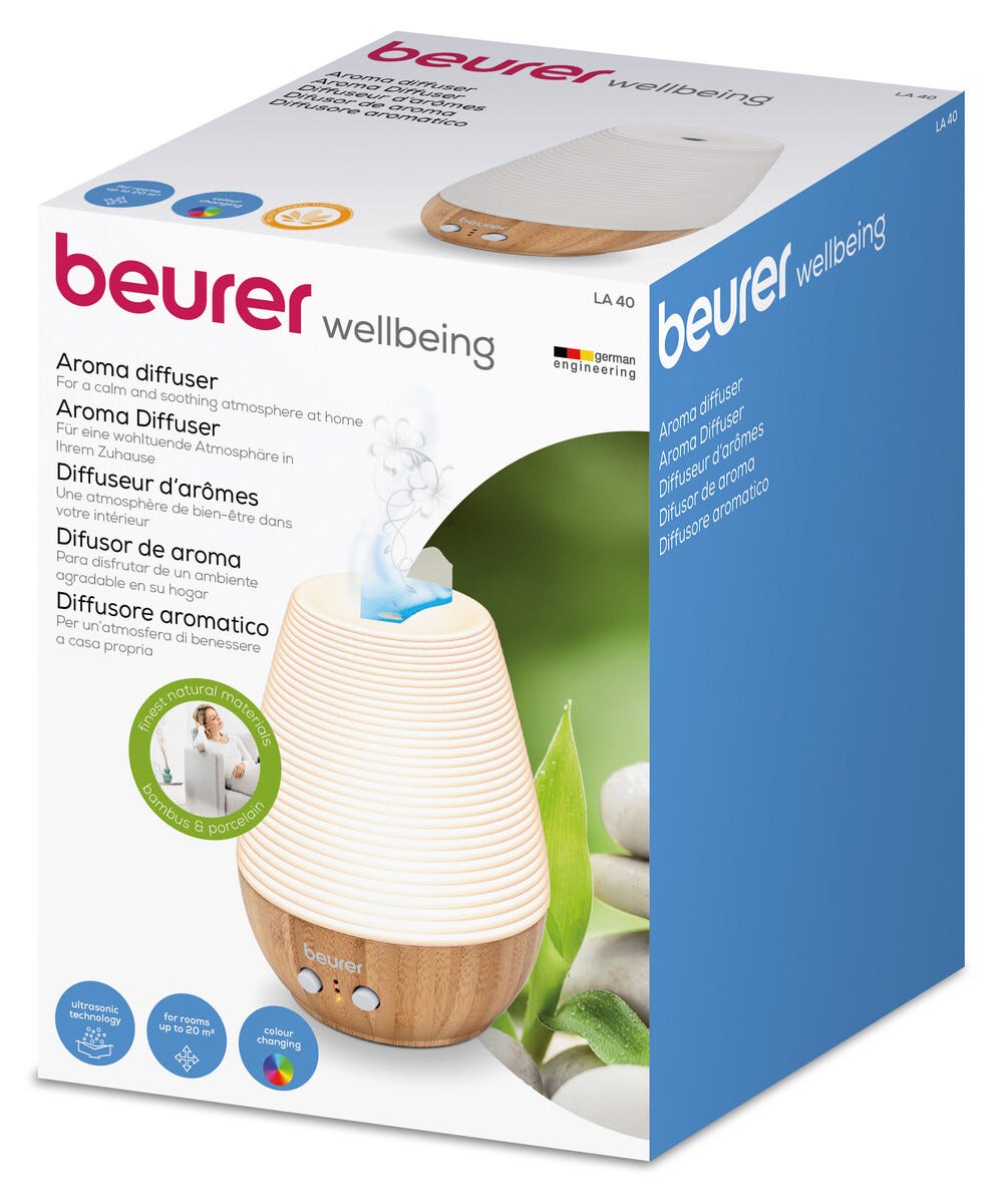 • Beurer LA40 aroma diffuser med 7 ljussättningar i harmoniska färger.