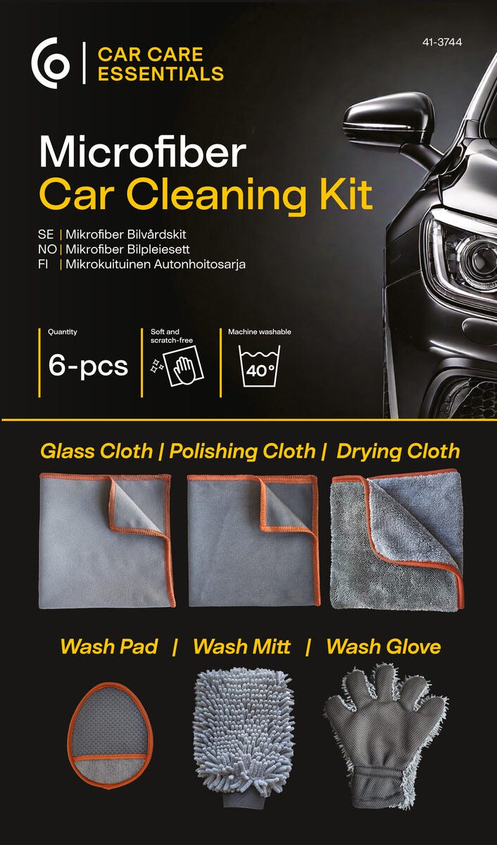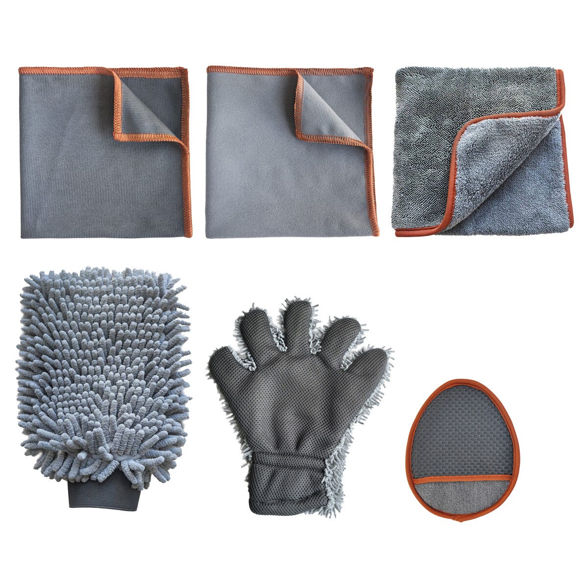 Bilvårdskit mikrofiber torkduk, putsduk, tvättvante, 6 delar