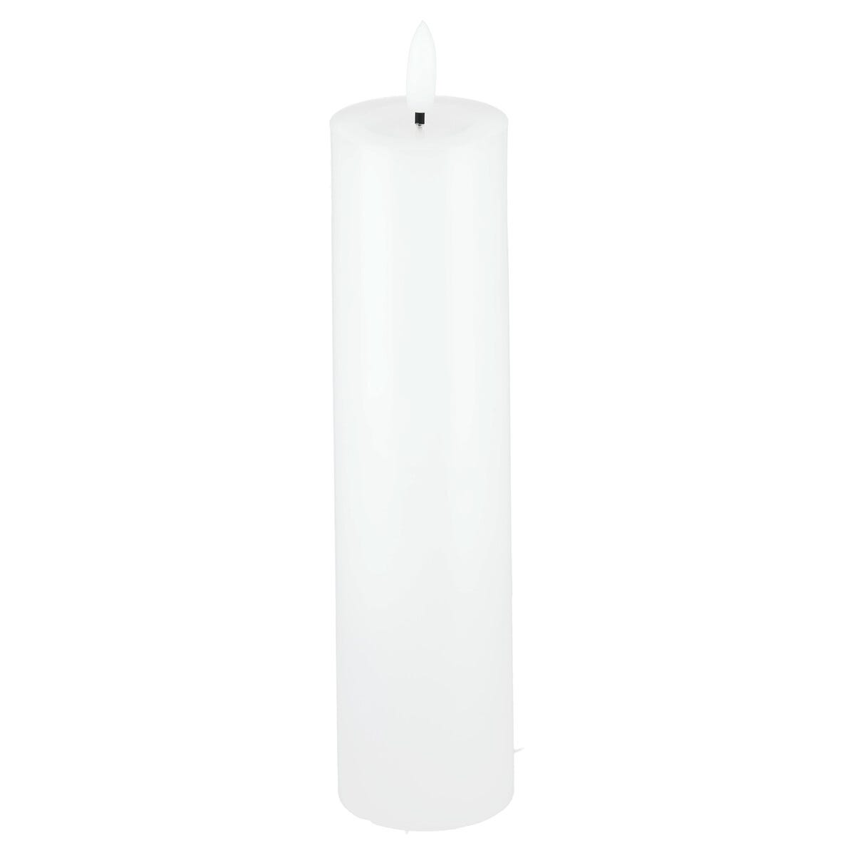• Ser ut som ett äkta stearinljus – blockljus i vax med naturtrogen flamma.