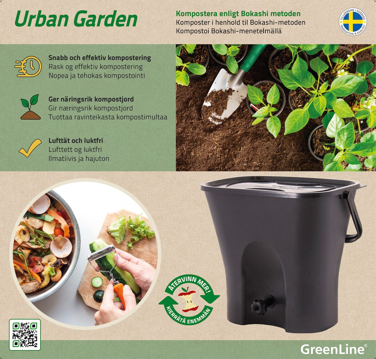 • Urban Garden Bokashi – svensktillverkad kökskompost av återvunnen plast.