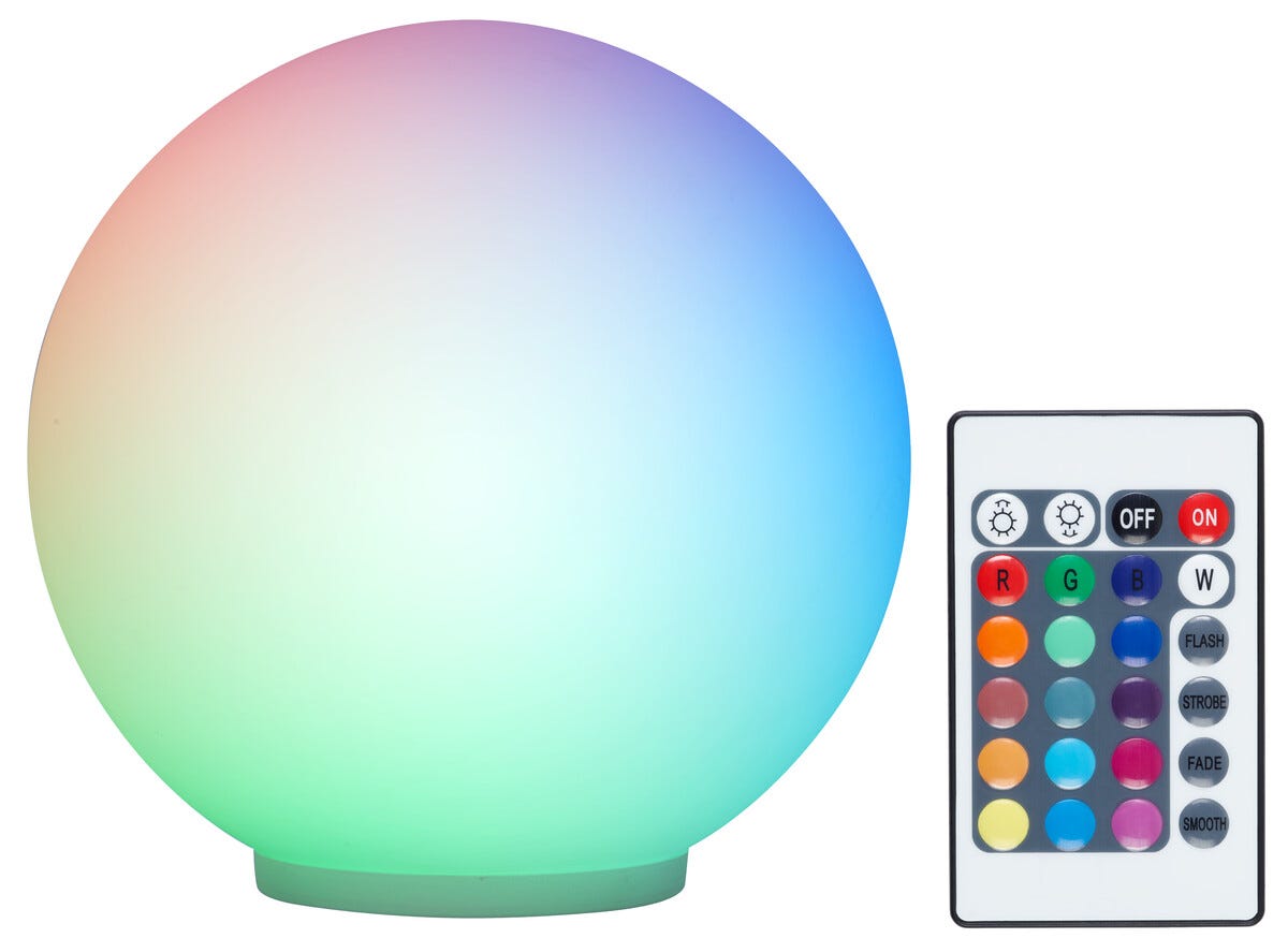 • RGB-lampa med glob i glas, där du själv väljer färg på lampans sken.