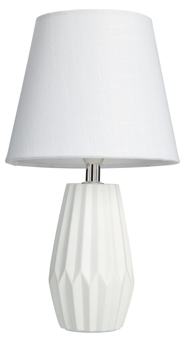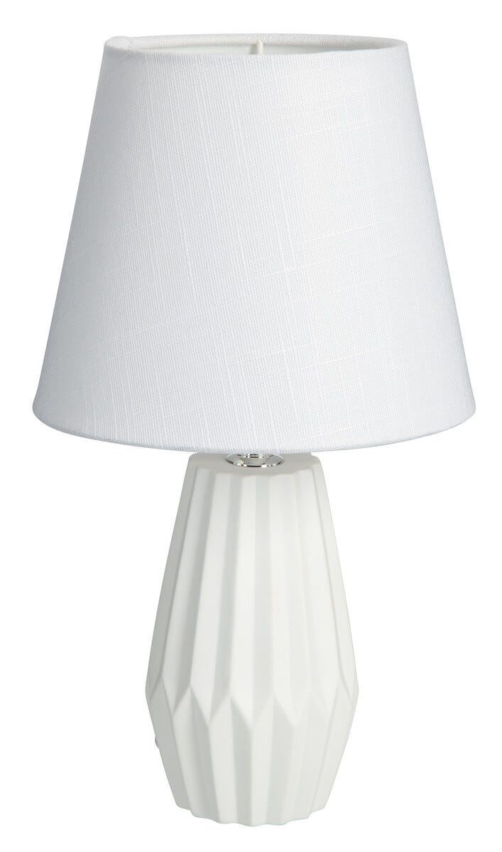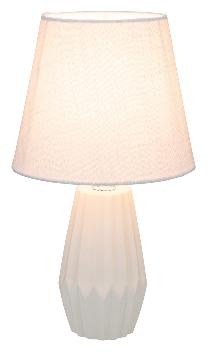 • Skärm i tyg och lampfot i keramik.