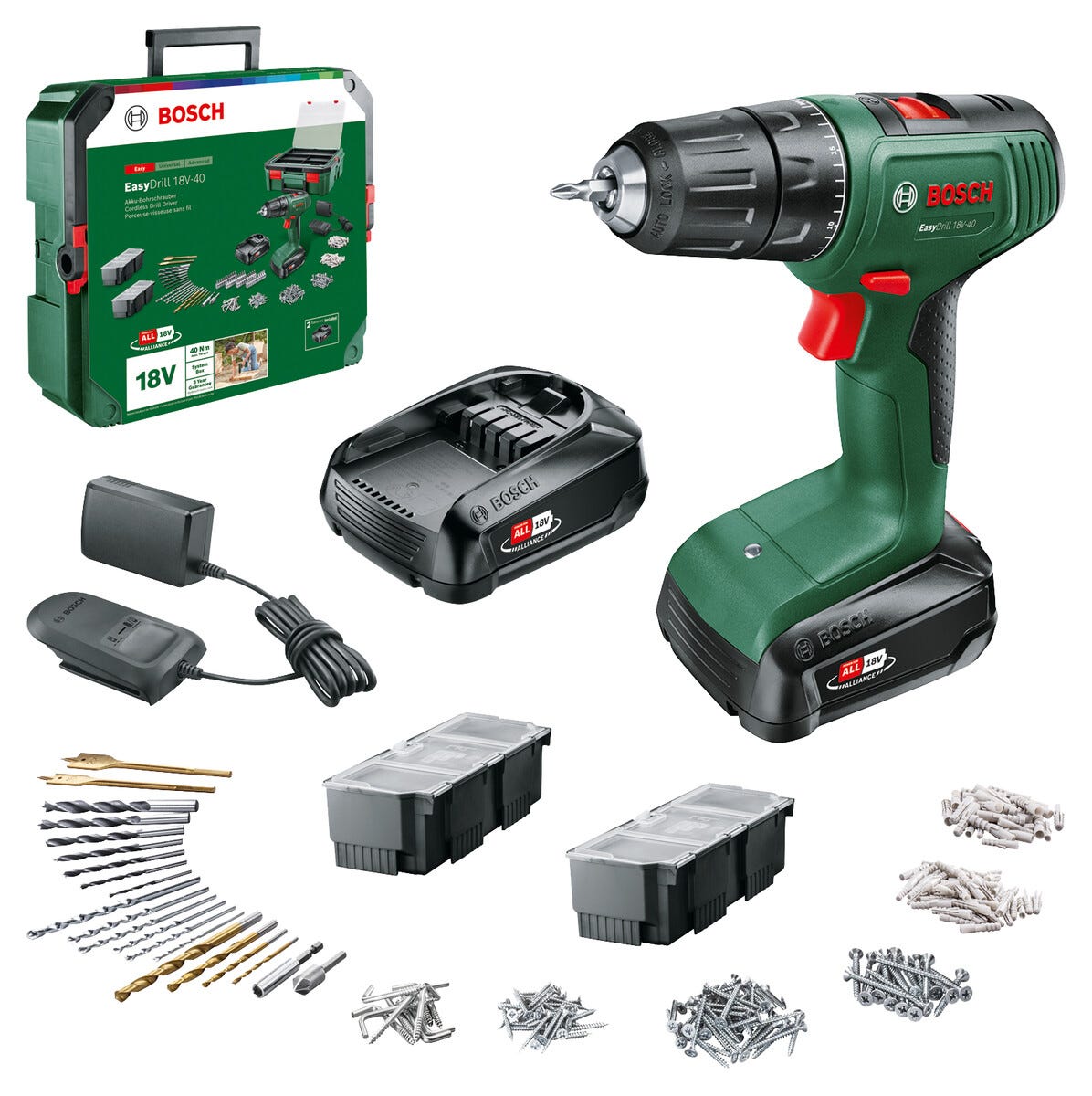 Bosch 18V skruvdragare med box och 241 tillbehör