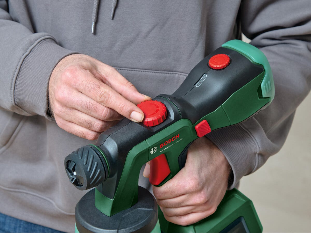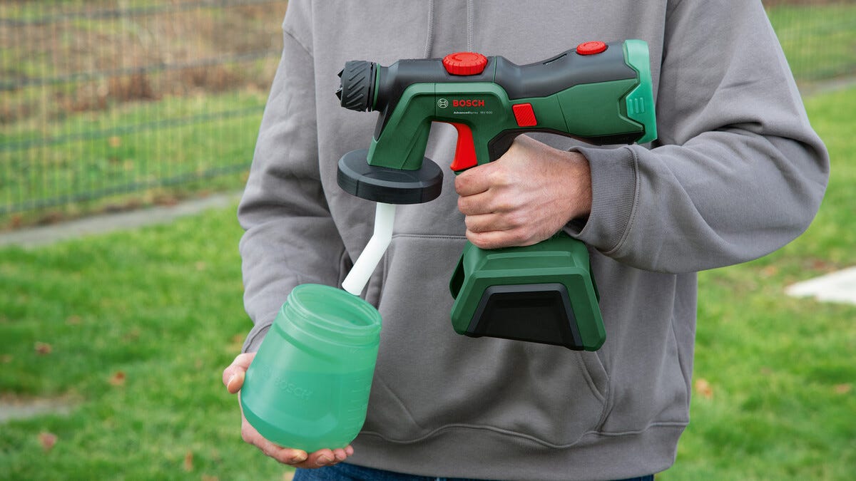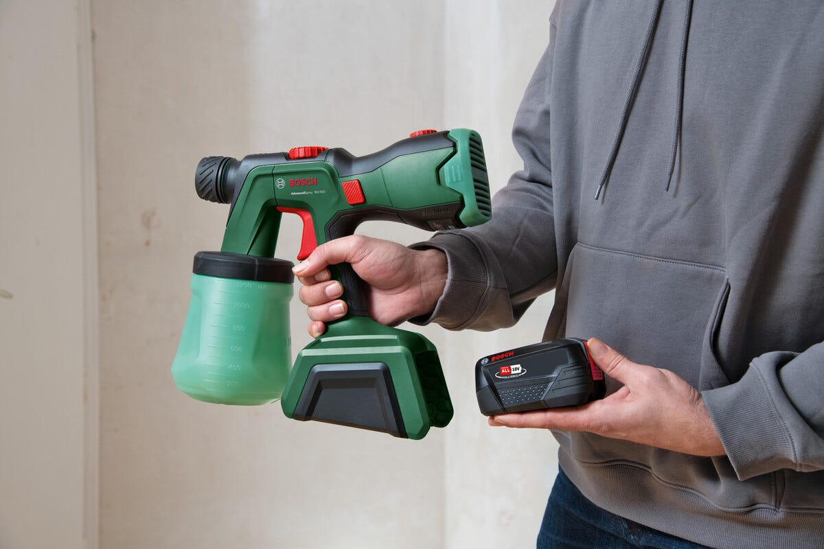 • Bosch AdvancedSpray 18V-500 – sladdlös färgspruta med 1,2 l färgbehållare.