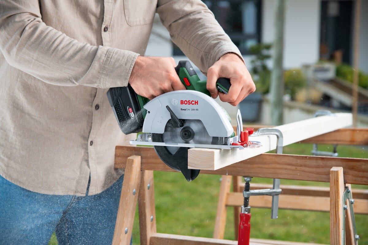 • Bosch cirkelsåg – lättanvänd såg med 150 mm sågklinga (ingår).