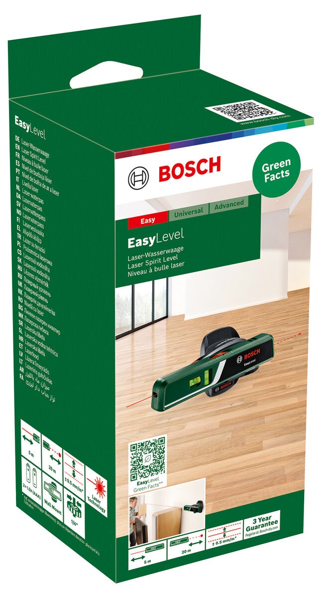 • Bosch EasyLevel – lättanvänt laservattenpass med vägghållare och magneter.