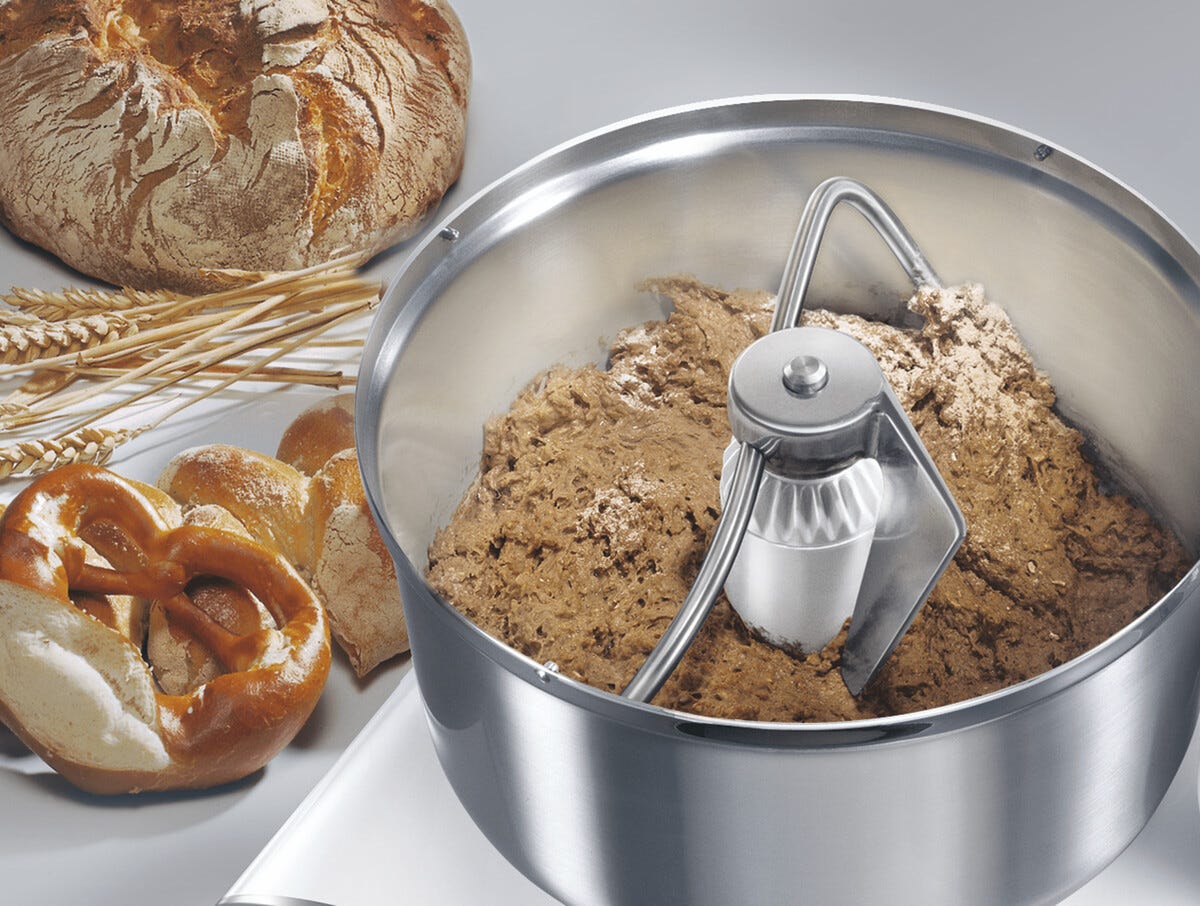 • Med extra stor bunke, degkrok, degskrapa, dubbelvisp och mixer.