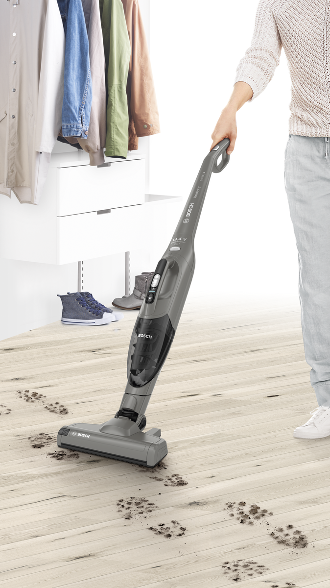 • Dammsugaren kan stå upprätt utan hållare eller laddstation.