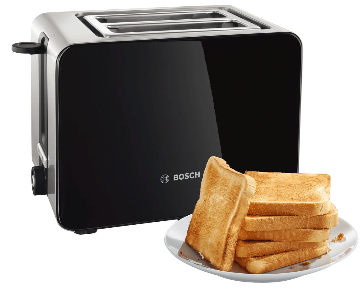 • Bosch TAT7203 – en stilren brödrost i metall för 1–2 skivor.