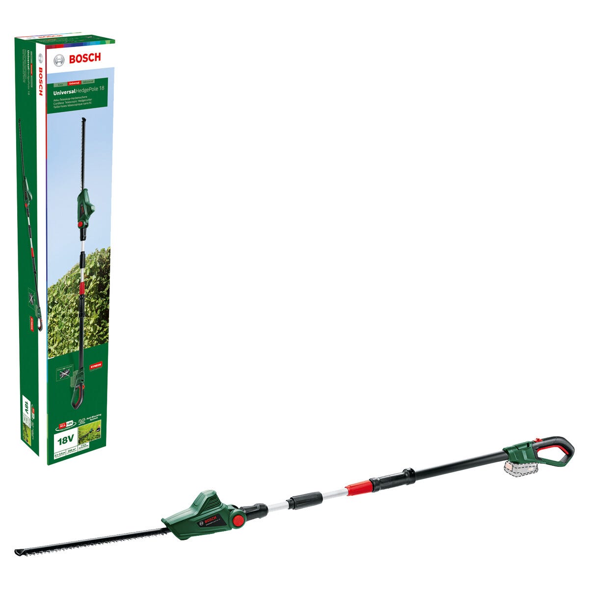 • Bosch UniversalHedgePole – sladdlös häcksax för effektiv trimning.