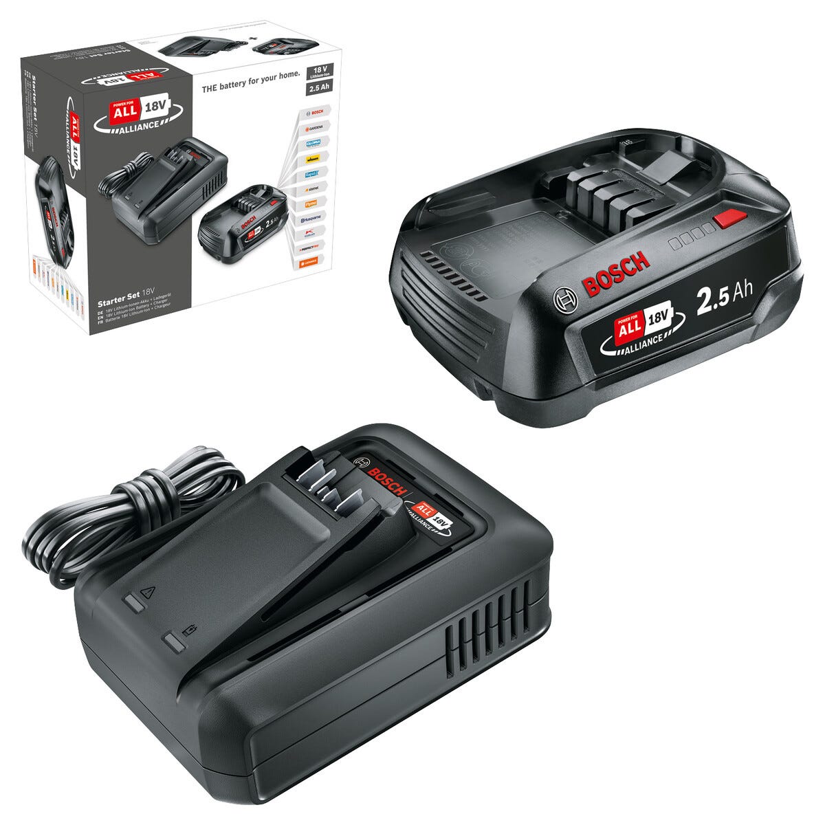 • Bosch startset 18 V – 1 x 2,5 Ah-batterier och 1 x snabbladdare (2,5 Ah/44 min).
