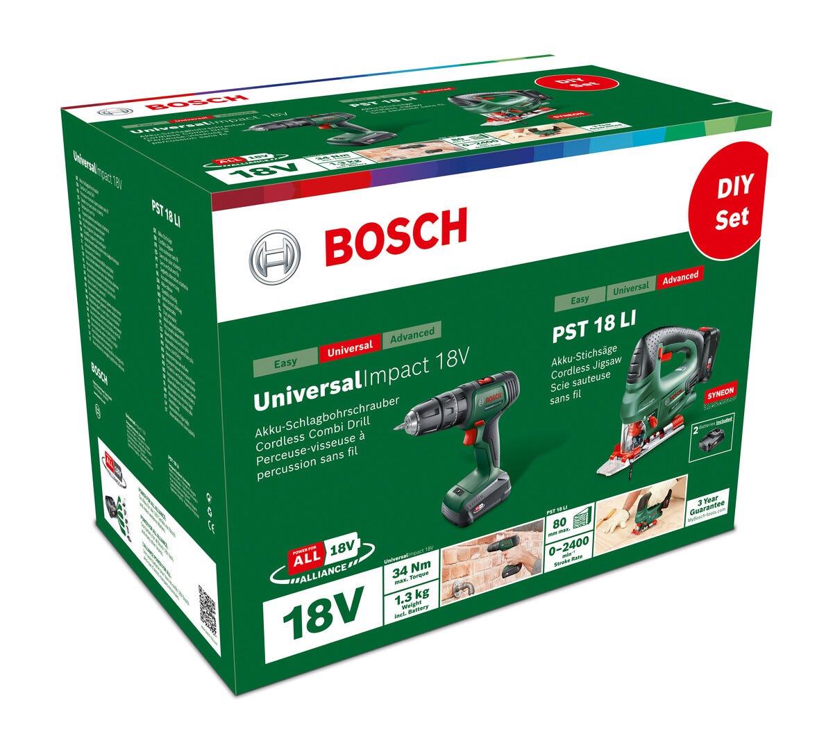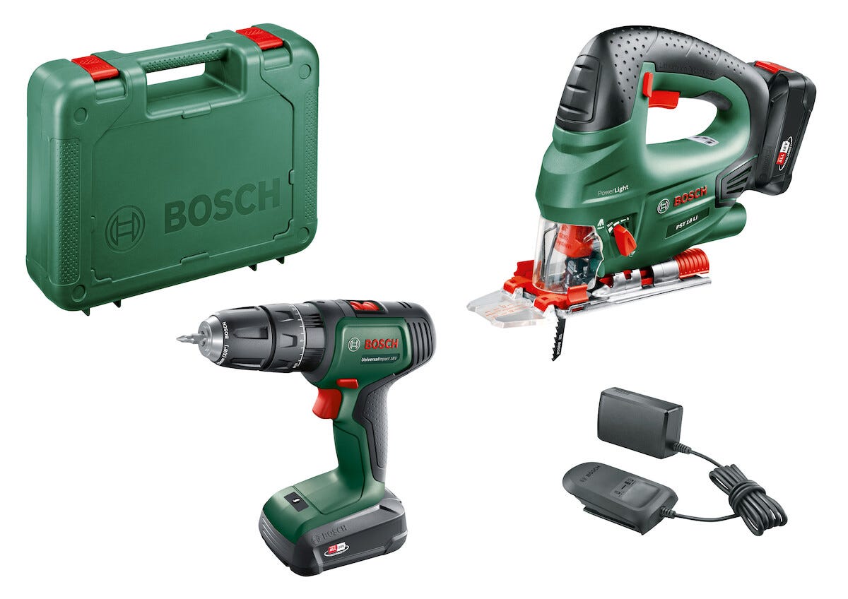 • 1 Bosch skruvdragare Universal Impact 18 V och 1 Bosch sticksåg PST 18 LI.