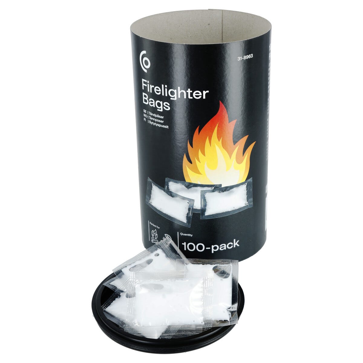 • 100 stycken tändpåsar i burk med lock.