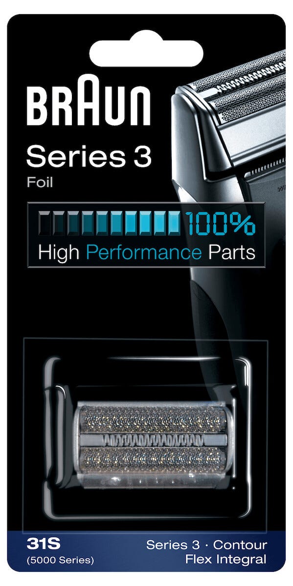 Kombipack med folie och skärhuvud till rakapparat Braun Series 3, Contour, Flex Integral och 5000 Series.