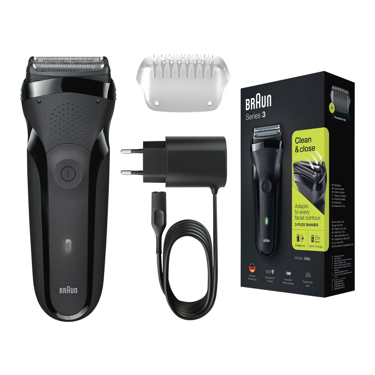 • Braun Series 3 300s – anpassar sig efter ansiktets och halsens konturer.