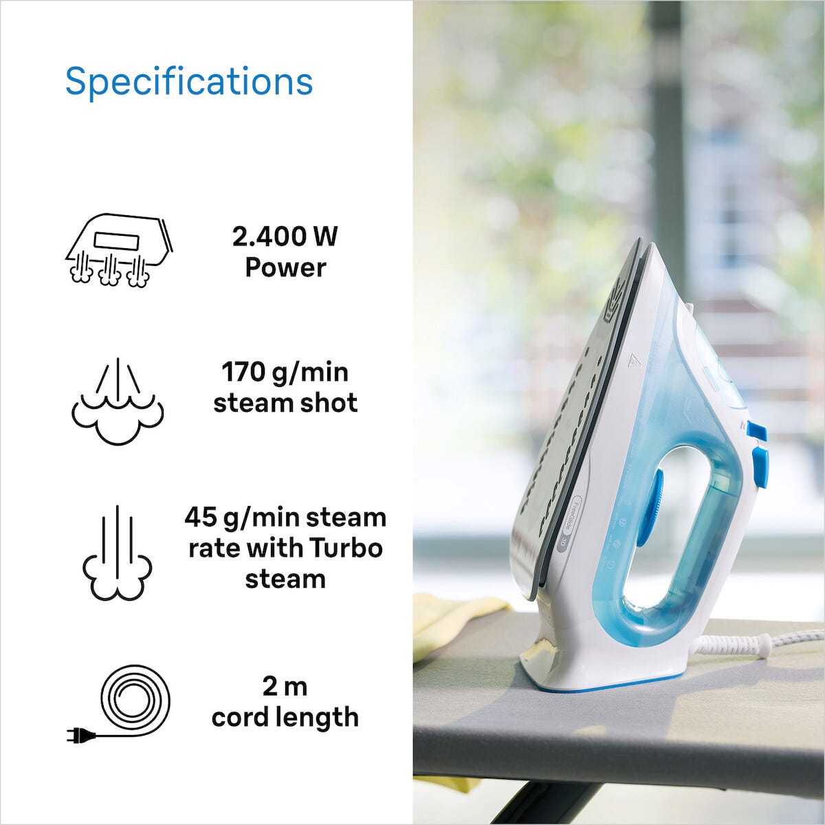 • Snabbuppvärmt och lättanvänt strykjärn med unik glideffekt.
