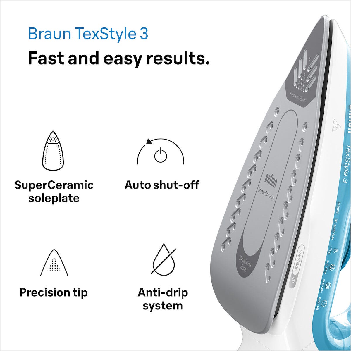 • Braun TexStyle 3 SI 3053 – kraftfullt ångstrykjärn med keramisk stryksula.