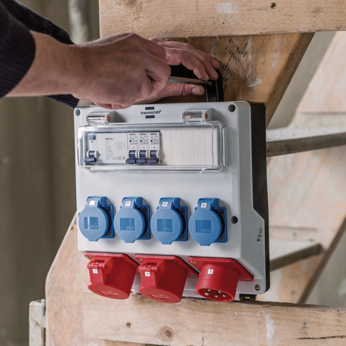 • Brennenstuhl byggcentral – portabel elcentral med slagtåligt plasthölje.