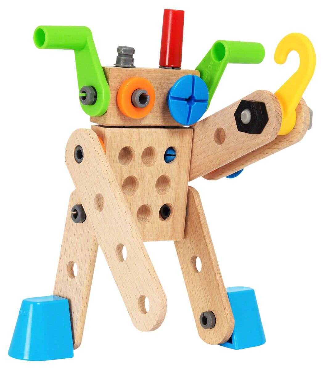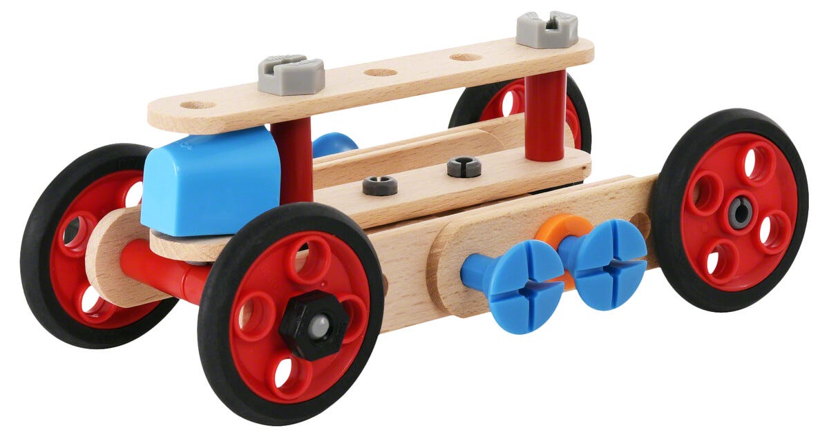 • Brio byggsats med olika delar, skruvar, muttrar och verktyg.