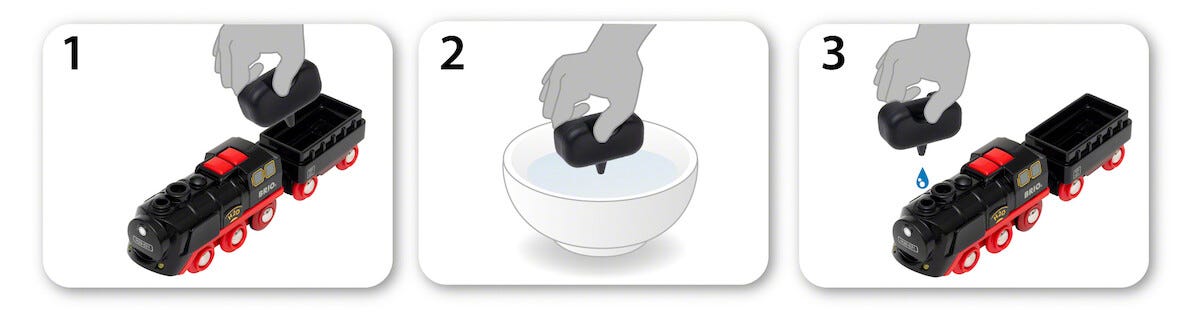 • Batteridrivet ånglok – drivs med 2 x AAA/LR6-batterier (säljs separat).