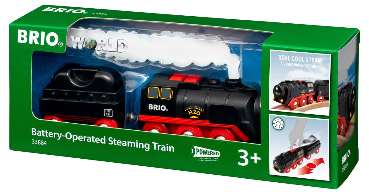 Brio batteridrivet tåg med ånga 33884, från 3 år