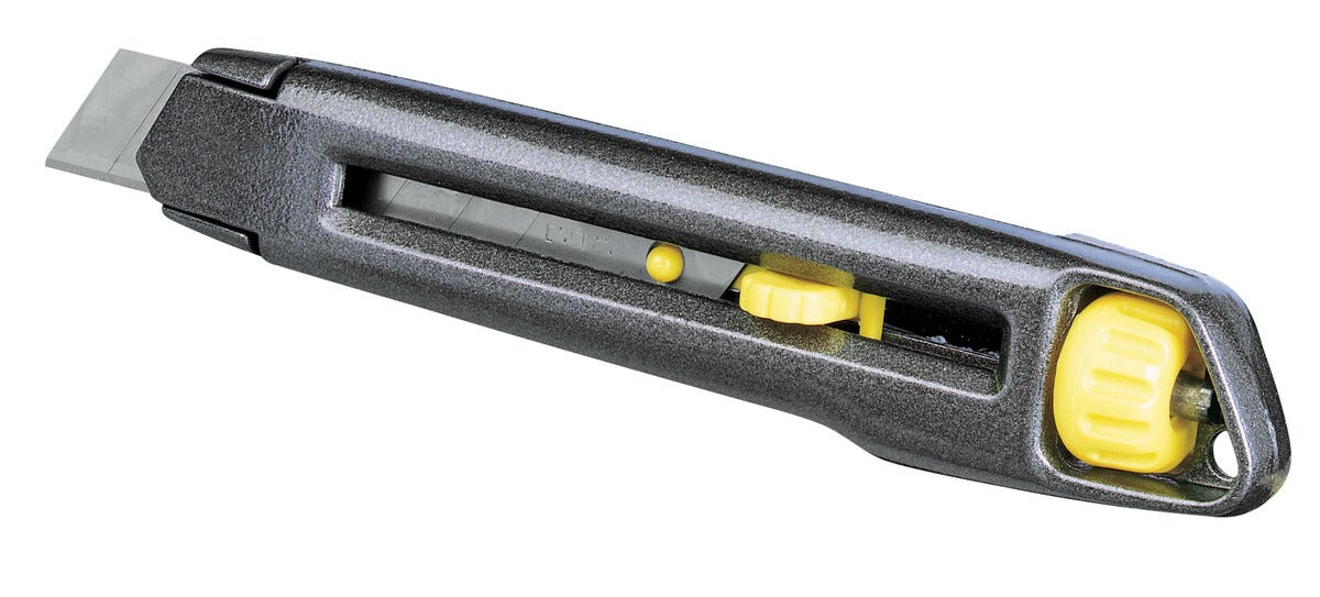 • Kvalitetskniv med låsmekanism som fixerar bladet utan sidoglapp.