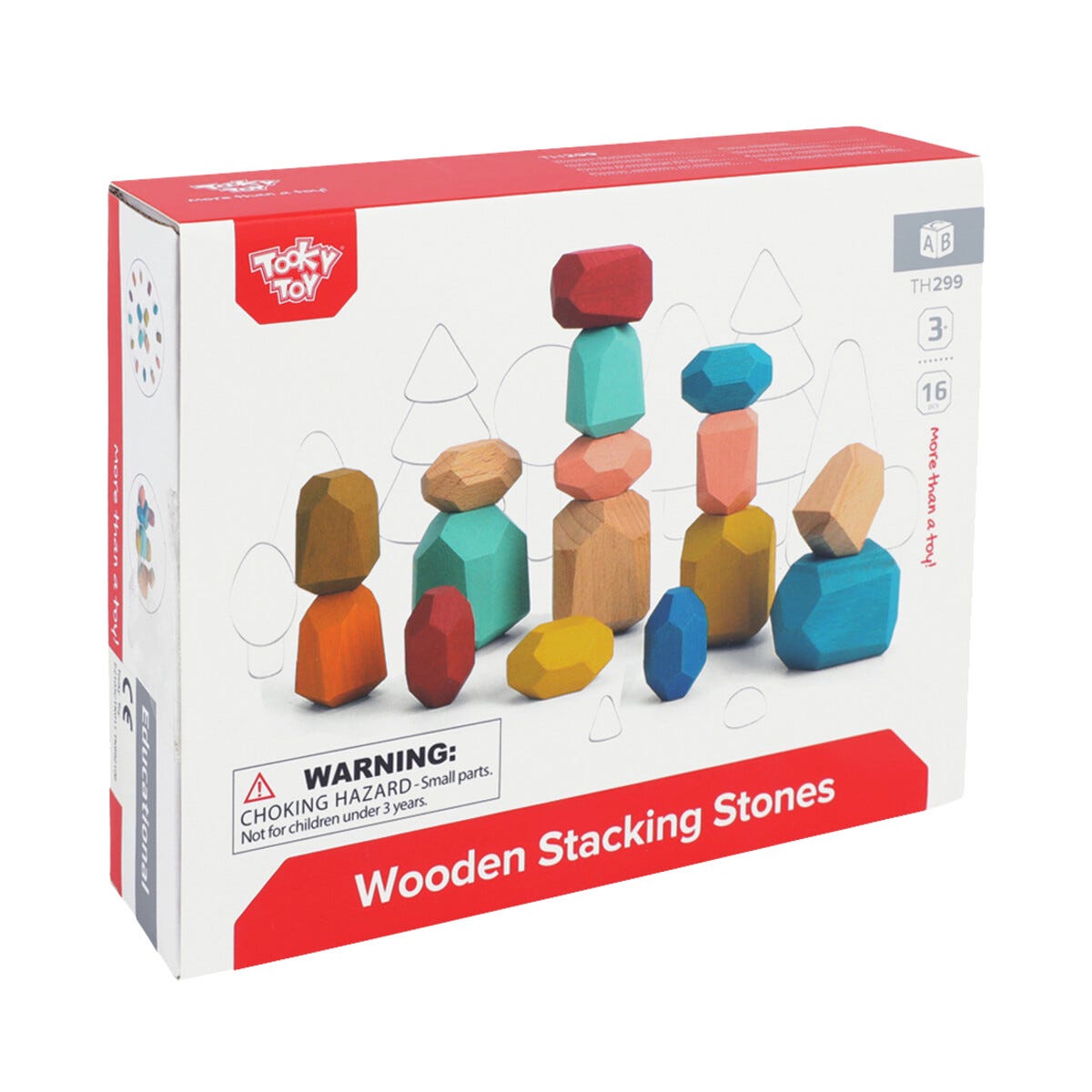 • Sensoriska byggklossar i trä – 16 färgglada klossar i olika former och färger.