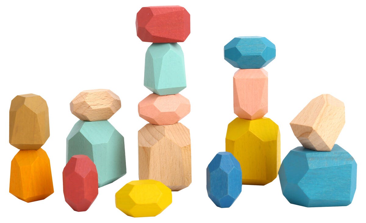 • Bygg figurer eller balansera träklossarna för att skapa höga torn.