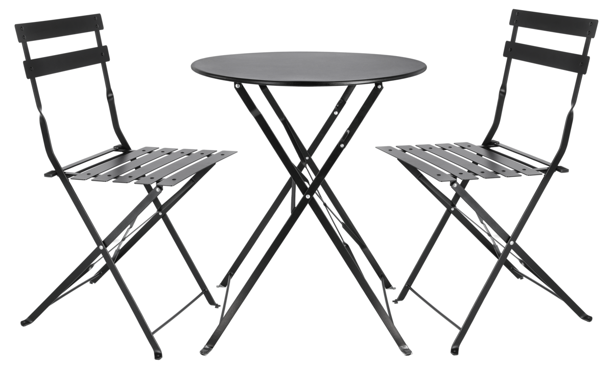 • Nätt, hopfällbart caféset i tålig och slitstark svart metall.