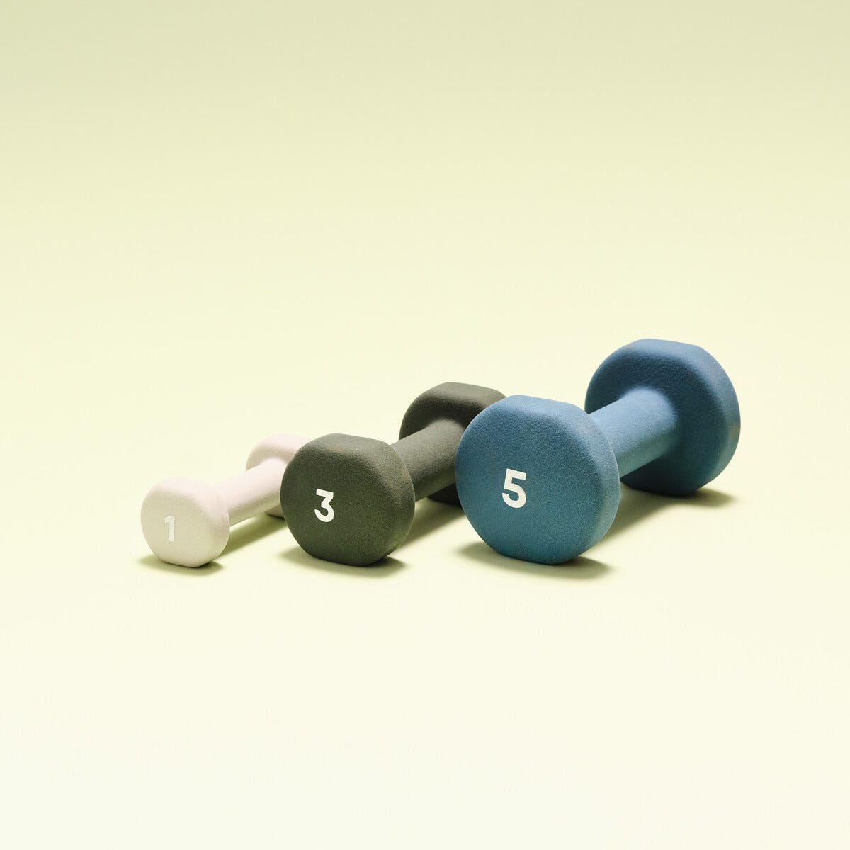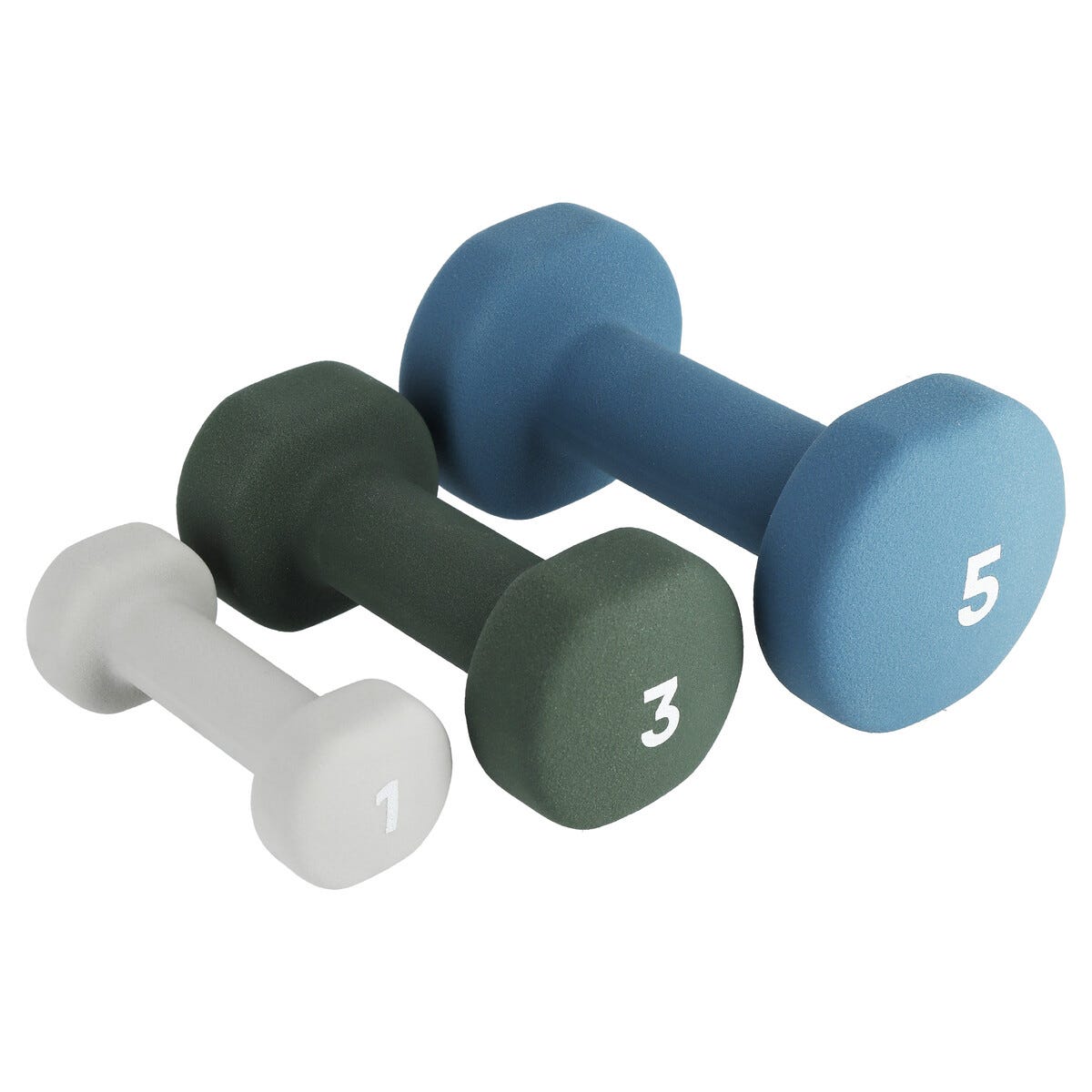 • Hexagonformade ändar förhindrar att hantlarna rullar iväg.