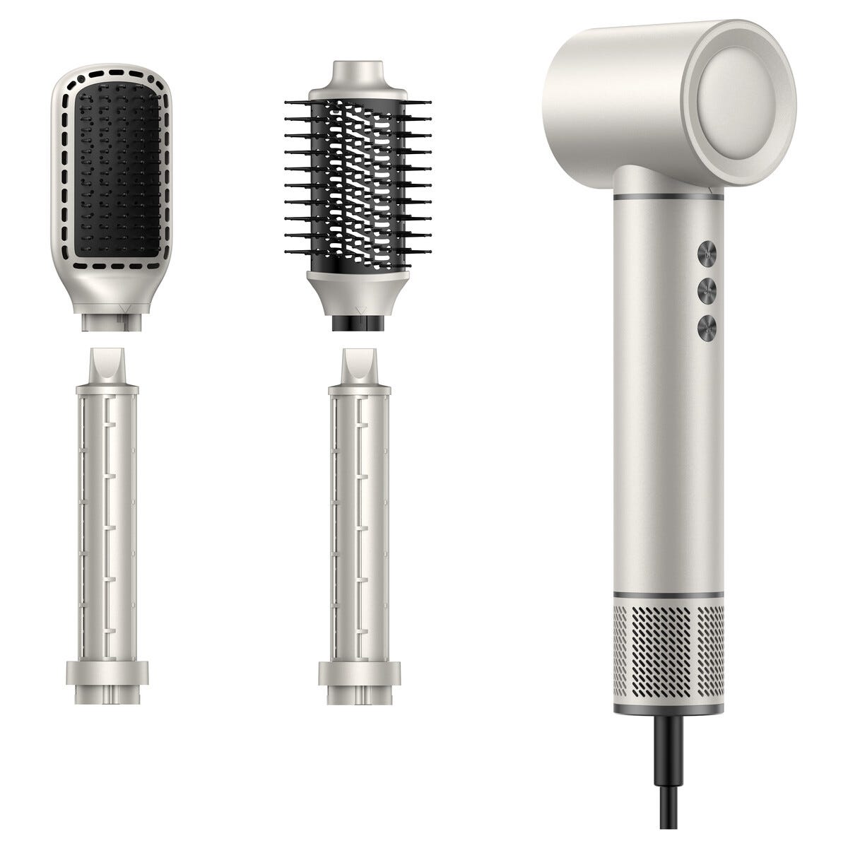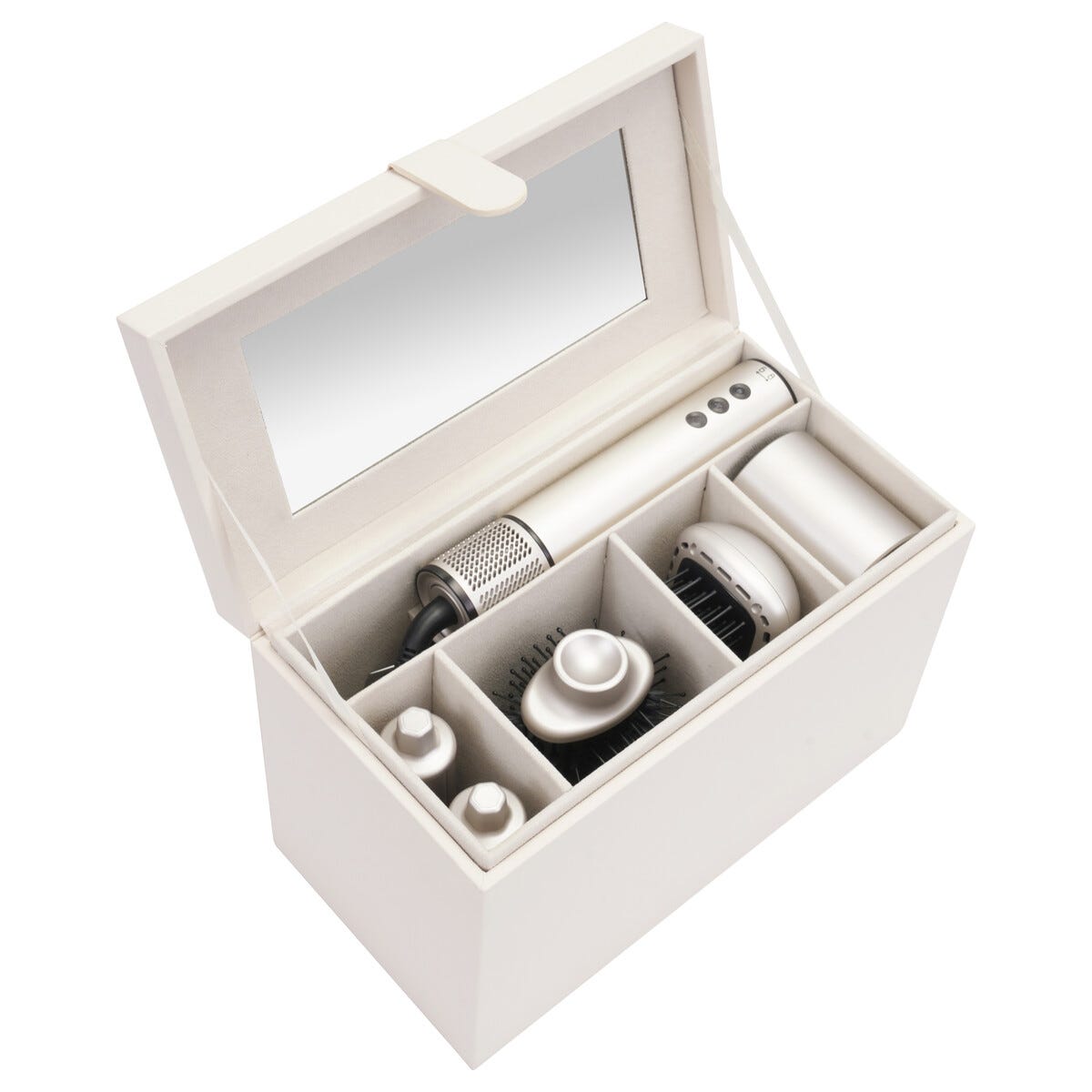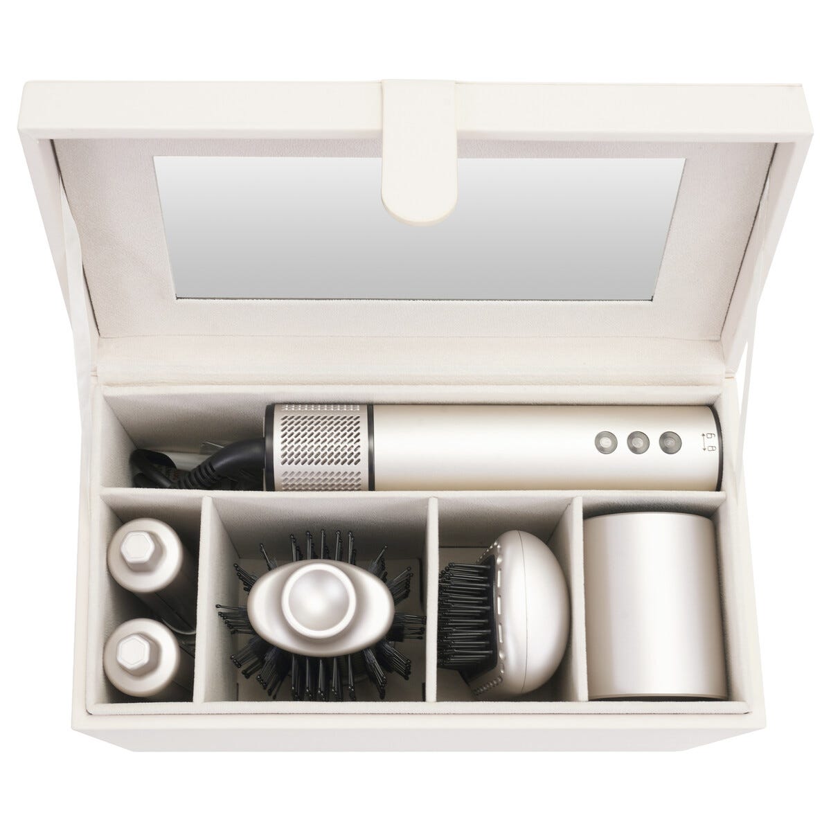 • Komplett hårstyling: locktång, rundborste, värmeborste och fönmunstycke ingår.