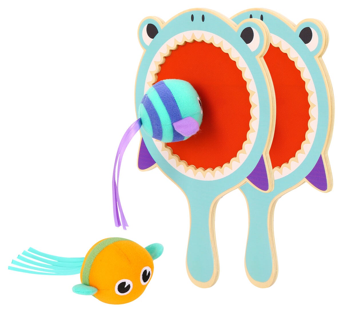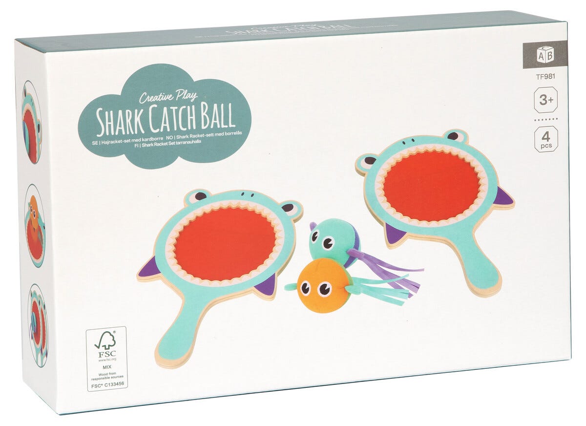 • Catchball Haj – ett tennisset med 2 racketar i trä och 2 bollar som liknar fiskar.