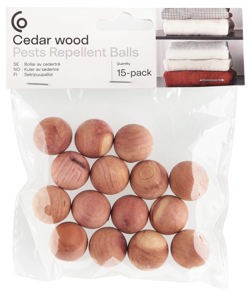 • Cederträ – 15 kulor av rött cederträ – diameter 2,2 cm.