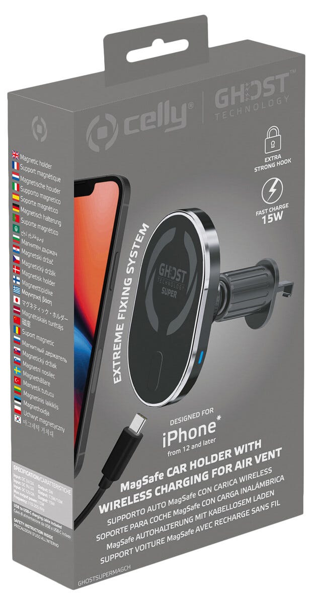Celly Ghost Super Magsafe bilhållare och laddare 15 W