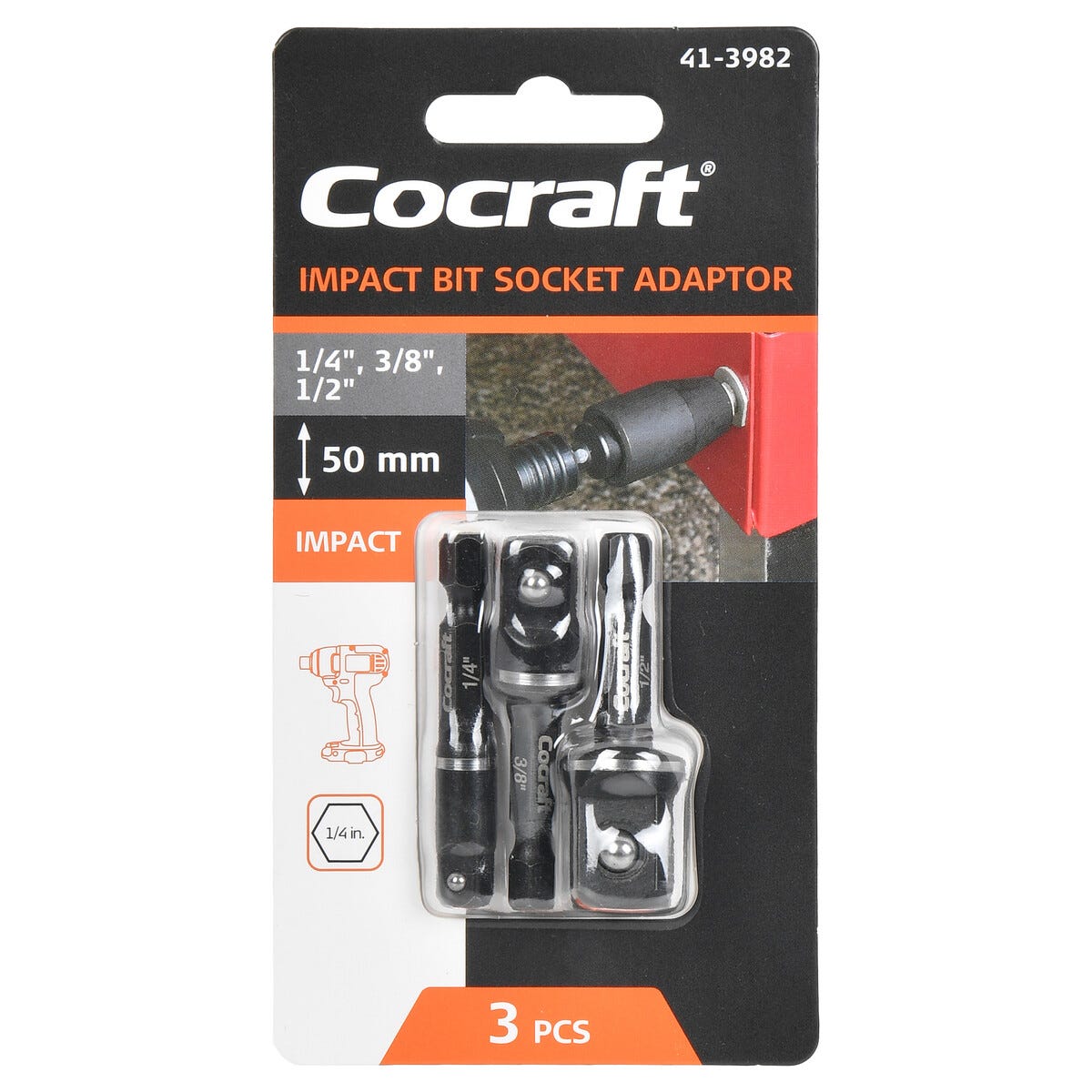 Cocraft adapter Impact 1/4, 3/8 och 1/2 tum, 3-pack