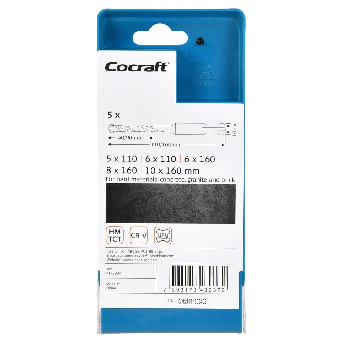 • Cocraft borrsats med SDS-plus-fäste – för borrning med borrhammare.