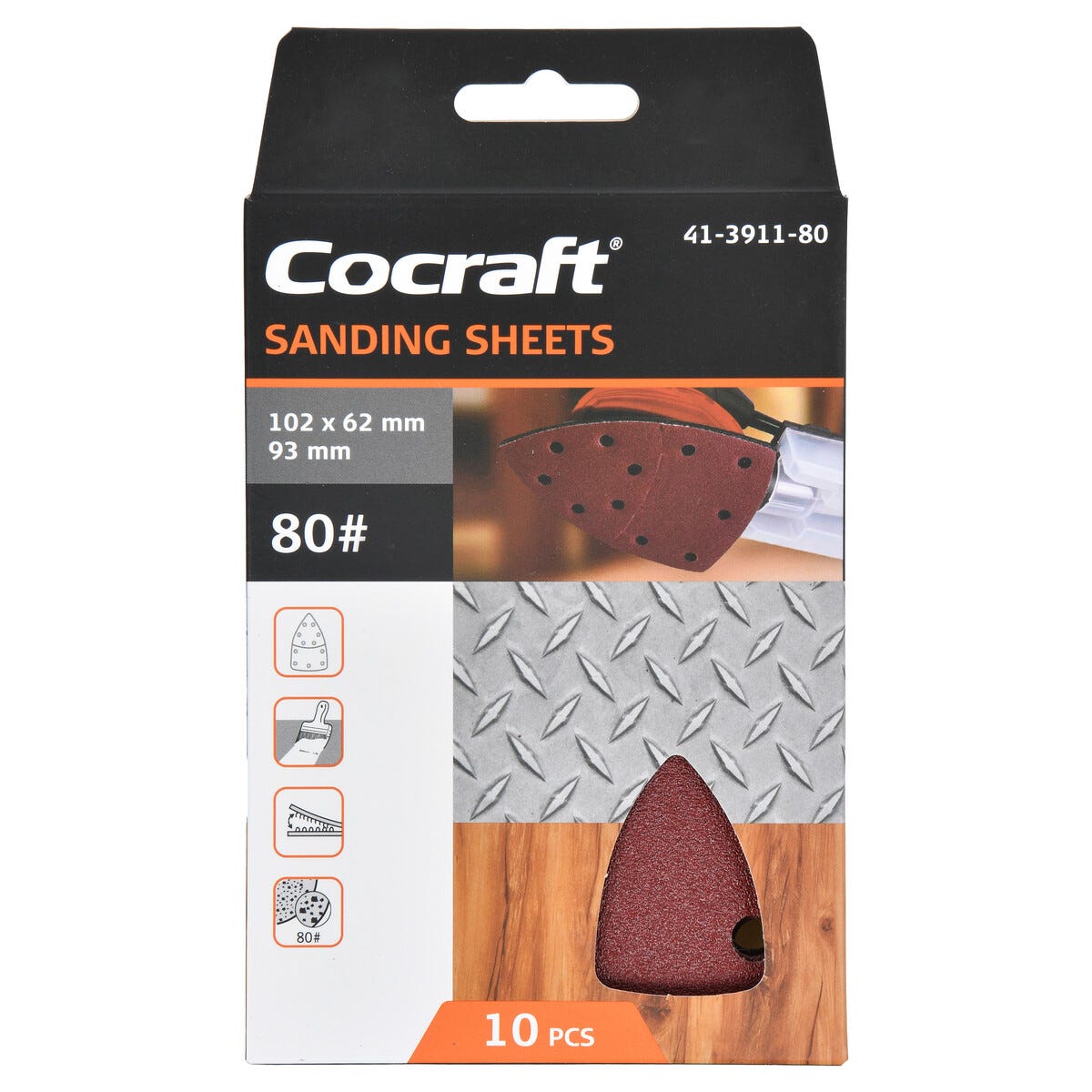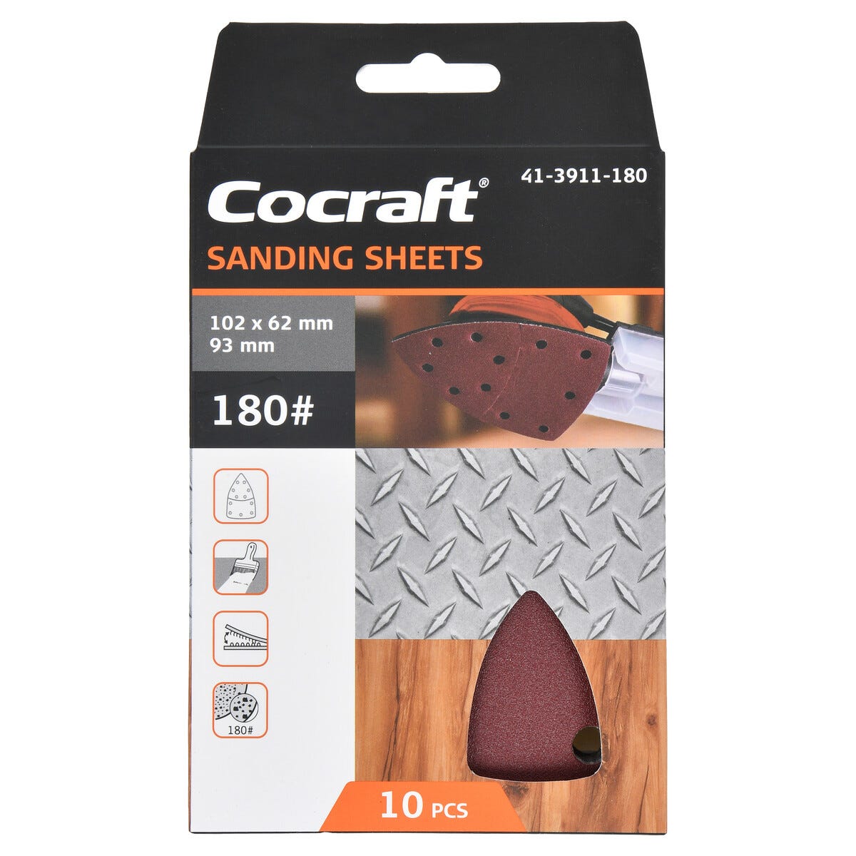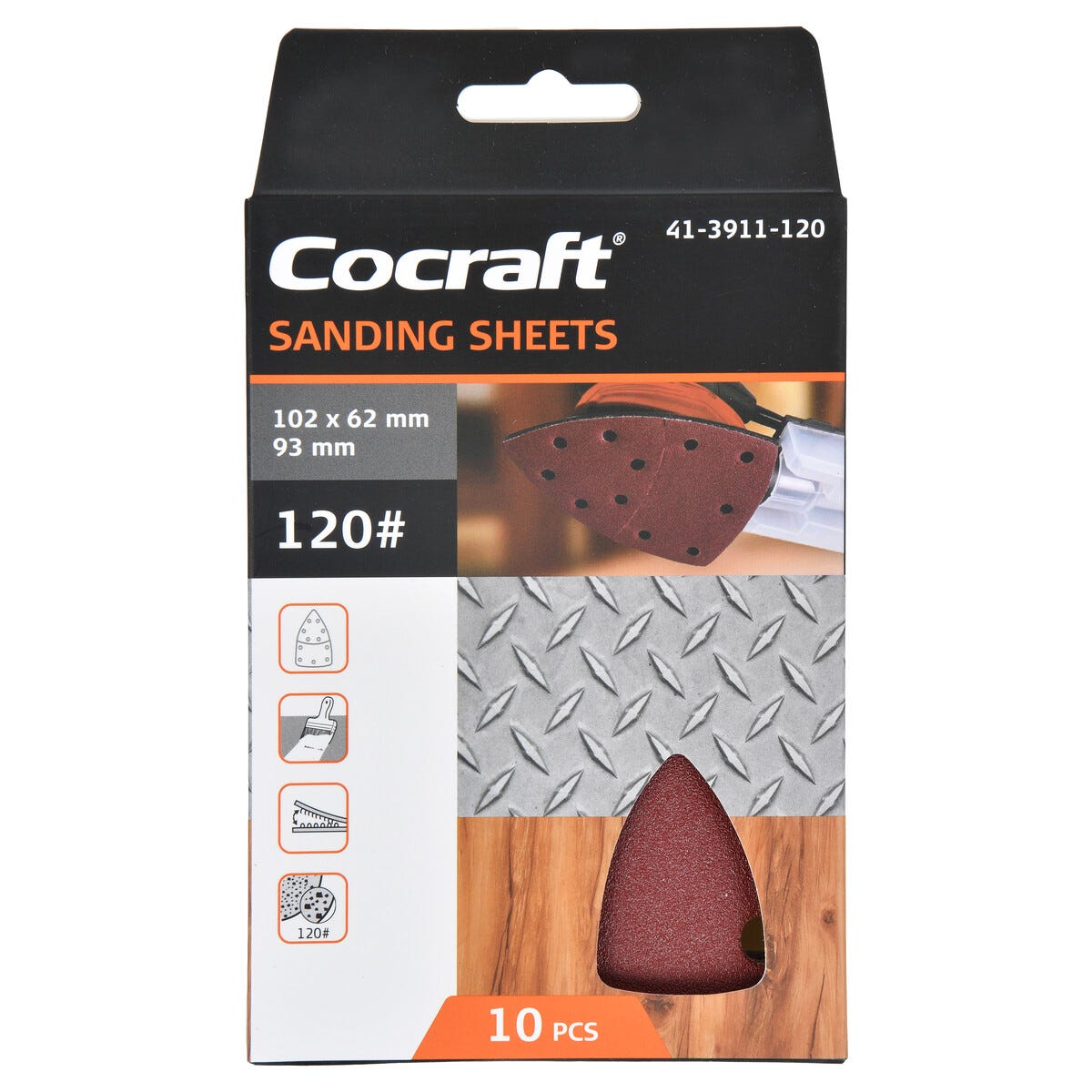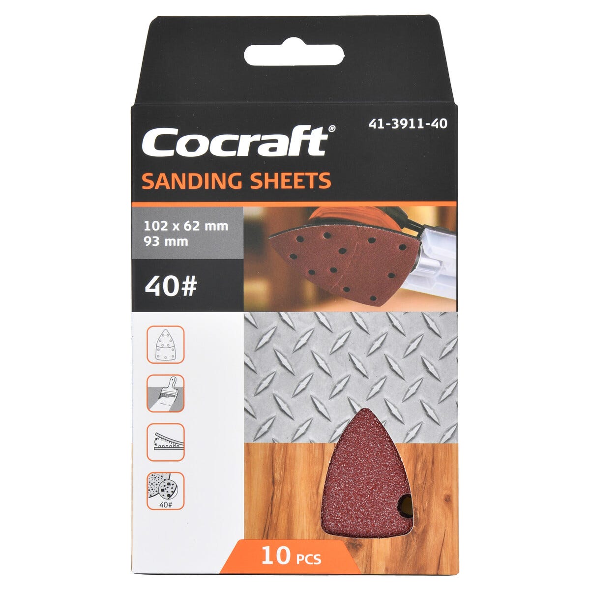 • Cocraft sandpapper med 11 utsugshål – finns i olika kornstorlekar.