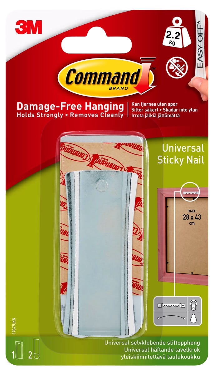 Command Sticky Nail självhäftande tavelkrok, 2,2 kg