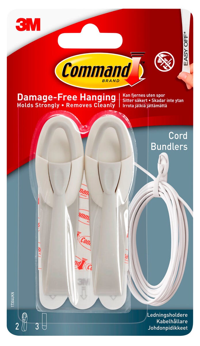 • Kabelhängare som enkelt fästs med dubbelhäftande tejp.