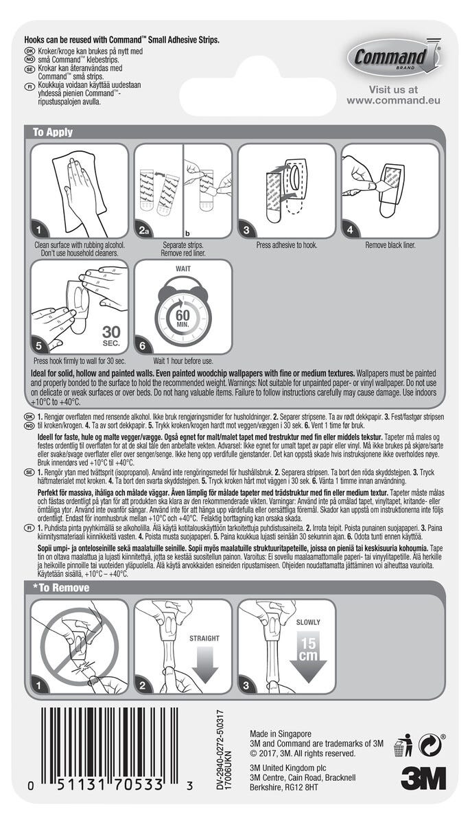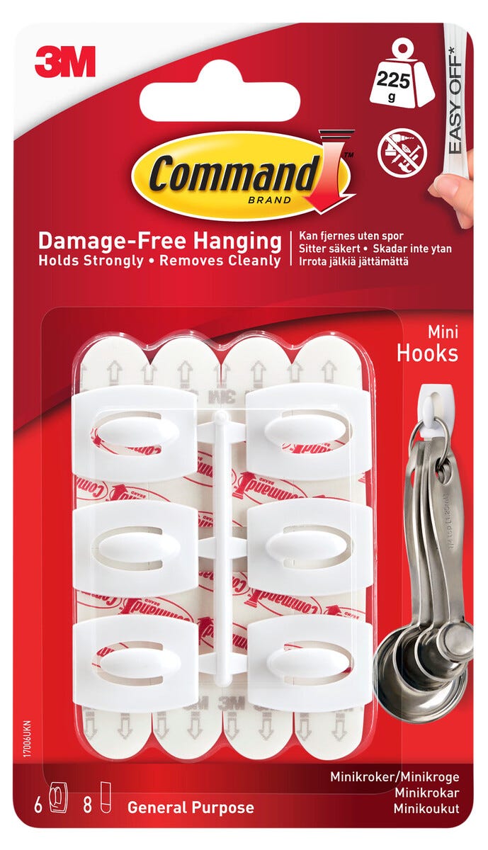 • Innehåller: 6 krokar och 8 små stripes. För inomhusbruk.